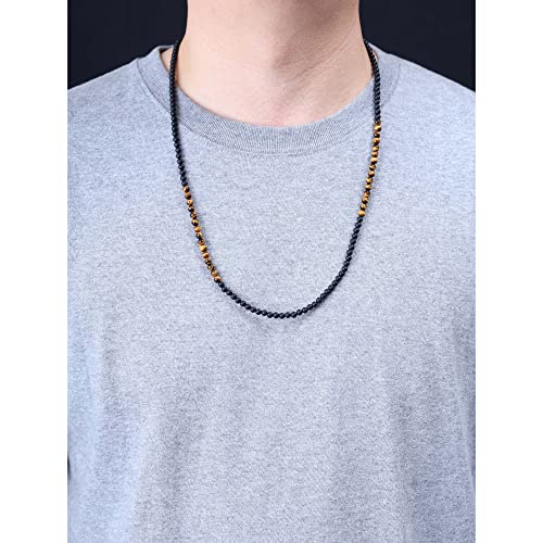 Collana unisex semplice e sportiva che alterna pietre naturali in onice opaco e occhio di tigre marrone
