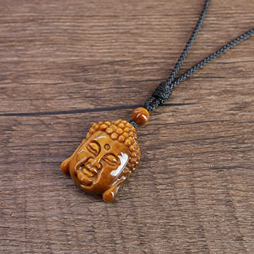 COAI Collana Unisex Regolabile con Pendente Testa di Buddha, Collana con Ciondolo in Pietre Naturali Occhio di Tigre