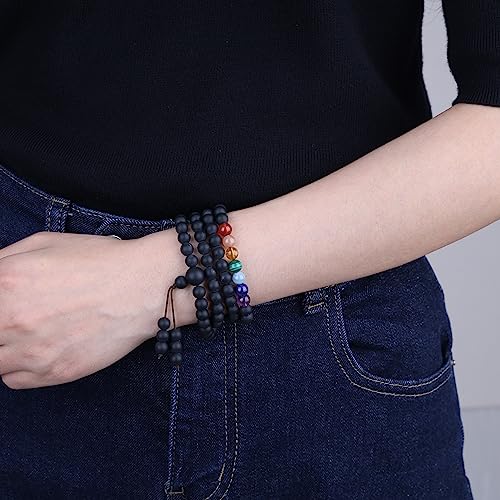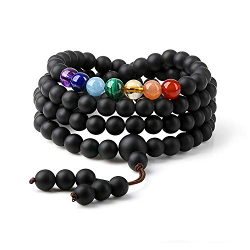 COAI Mala Multistrato con 108 Perle in Onice Opaco e Pietre Sette Chakra