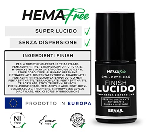 TOP COAT INDISPENSABILE: Top Coat Gel è uno dei prodotti che non deve mancare se di desidera avere unghie ordinate e lucide è fondamentale la sua applicazione, inoltre il Finish di Benail è No Wipe o meglio senza dispersione e per questo è imnportante non sgrassare l'unghia con Clenaer dopo aver Polimerizzato in Lampada UV ~ 120 | LED ~ 60;