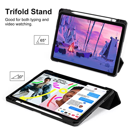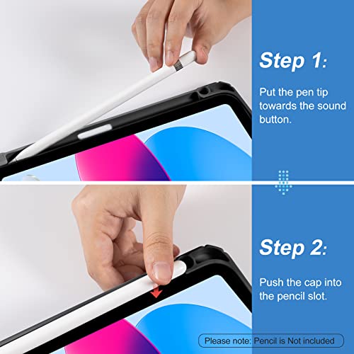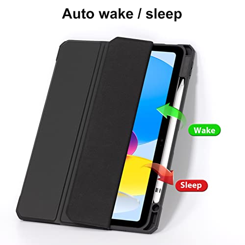CoBak Custodia per iPad 10,9 Pollici Modello 2022 (10a Generazione) con Pencil Holder, Cover Tablet Sottile con Retro in Morbido TPU con Auto Svegliati/Sonno (Nero)