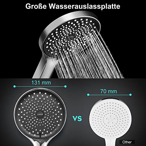 Cobbe Soffione per doccia a risparmio energetico, grande soffione a pioggia, aumento della pressione, con 3 tipi di getto, nero/cromato