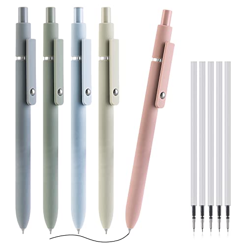 Cobee Aesthetic - Penna a sfera retrattile, 0,5 mm, 5 pezzi, con ricarica, penna a sfera, inchiostro nero, penne lisce, penna a sfera pastello per la scuola
