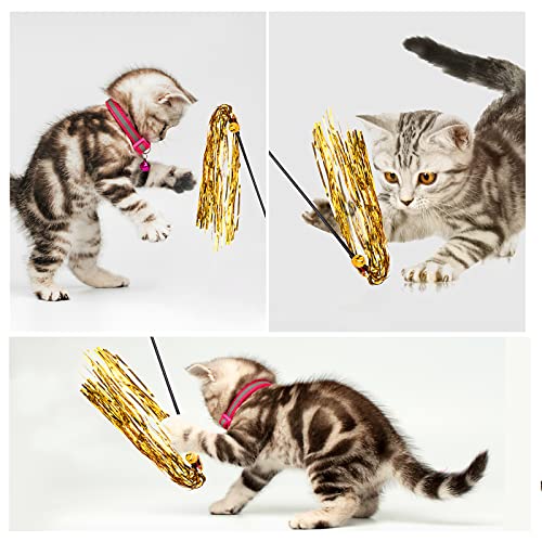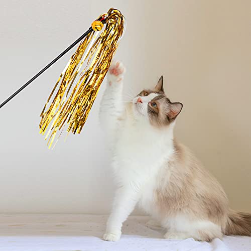 Contenuto della confezione: la nostra confezione viene fornita con 5 giocattoli con bacchetta per gatti incantatore con campane e nappe di carta sonora che possono essere utilizzati a lungo. La bacchetta giocattolo per gatti è di 28 cm e le nappe in carta dorata sono di 20 cm. Bacchetta super leg