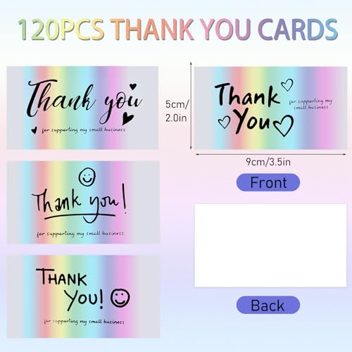 Biglietti di ringraziamento: ci sono 120 biglietti di ringraziamento, in 6 stili diversi, stampati con ringraziamento per aver sostenuto la mia piccola impresa, 20 in ogni stile, la dimensione di ogni cartolina di apprezzamento è di 9 x 5 cm;