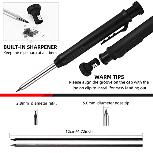 Cobee Matite meccaniche da carpentiere con 6 ricariche, matite da carpentiere solide con temperamatite incorporato per la lavorazione del legno con fori profondi per creare matite automatiche(nero)