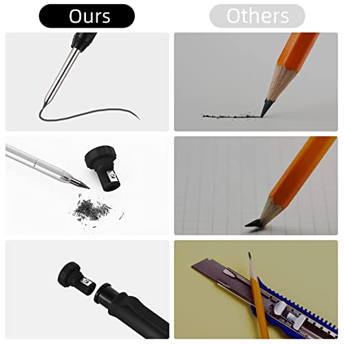 Temperamatite integrato: la parte superiore della matita da carpentiere è dotata di un mini temperamatite, ruotare la parte superiore del pennarello per rimuovere il temperamatite, quindi non è necessario acquistare un temperamatite separatamente. Non si perderà nemmeno e la matita meccanica sarà sempre affilata per una bella precisione. Dopo aver utilizzato il temperamatite, installare il temperamatite sulla parte superiore della penna;