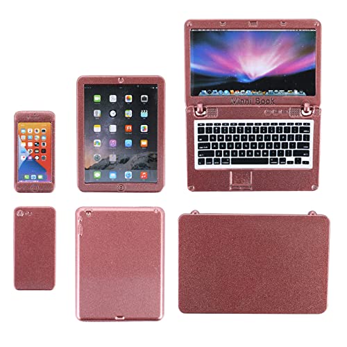 Cobee Miniatura in metallo 1:12, per computer portatile, tablet, smartphone, casa delle bambole, miniature, scena, simulazione, mobili, accessori per casa delle bambole, accessori da gioco (oro rosa,