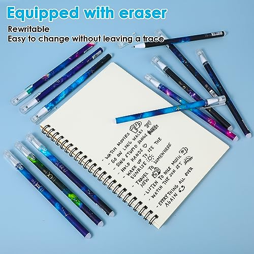 Cobee 12 penne gel cancellabili Constellation con gomma, penne roller cancellabili da 0,5 mm penna a inchiostro gel a punta fine scrittura fluida per scuola ufficio casa (nero)
