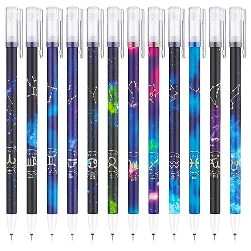 【Constellation Design】Riceverai 12 pezzi di penna cancellabile con design a costellazione da 0,5 mm.Ogni penna mostra un modello di costellazione unico, aggiungendo un tocco di incanto alla tua esperienza di scrittura.Con un'ampia quantità inclusa, avrai molto per uso personale e da condividere, rendendolo la scelta perfetta per chiunque sia affascinato dalle costellazioni.