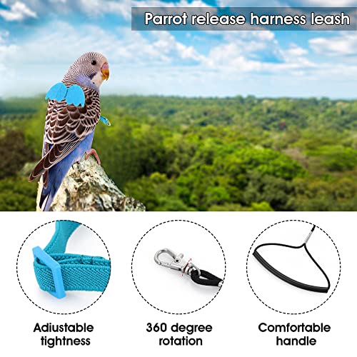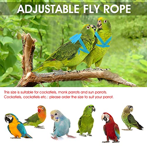 Cobee Pettorina e guinzaglio per uccelli pappagallo, Corda regolabile per addestramento al volo per pappagalli Corda di nylon per uccelli Kit imbracatura e guinzaglio per uccelli(Blu)