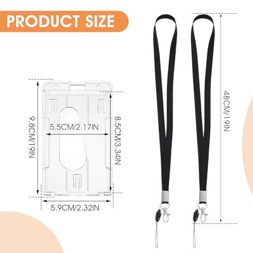 Cobee Porta badge in plastica rigida con cordini, set di 2 protezioni per carte di credito resistenti con slot per il pollice, cordino da collo staccabile, porta etichette trasparenti per nome,