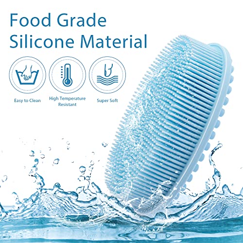 Cobee Spazzola da Bagno in Silicone, Scrubber Corpo Morbido Spazzola Doccia Esfoliante Spazzola Loofah Spazzola Scrub Corpo Spazzola Massaggio Testa 2 in 1 Spazzola Shampoo (Blu)