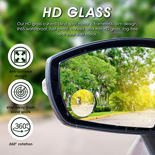 【Materiale di alta qualità】 Il nostro design ultrasottile senza cornice con vetro a specchio HD da 2 pollici, lo specchietto laterale con adesivo ad alta viscosità per l'installazione. Uno specchio convesso è realizzato in materiale impermeabile e il vetro non si appanna, adatto per uso interno o esterno.