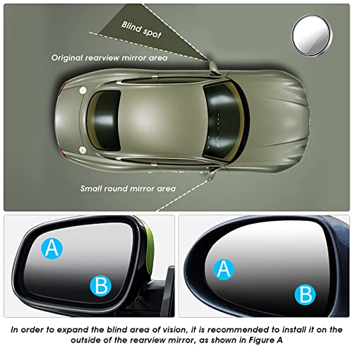 【Viste più ampie】 Lo specchietto retrovisore dell'angolo cieco dell'auto è girevole a 360 gradi e regolabile in modo girevole, il che massimizza la visuale con il grandangolo in macchina. Offre la visuale più ampia che qualsiasi specchio per angoli ciechi può offrire.