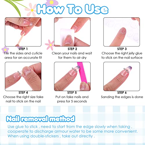 【Facile da usare】 Taglia e pulisci prima le tue unghie naturali, scegli la giusta dimensione di unghie finte quadrate e applica il nostro nastro per unghie finte, quindi premi sulle unghie per 10 secondi. Quando rimuovi la pressa sulle unghie, immergi le unghie in acqua per circa un minuto per rimuoverle più facilmente. Invece di spendere un sacco di tempo e denaro al salone di bellezza, puoi cambiare il tuo stile di unghie in 15 minuti sempre e ovunque.
