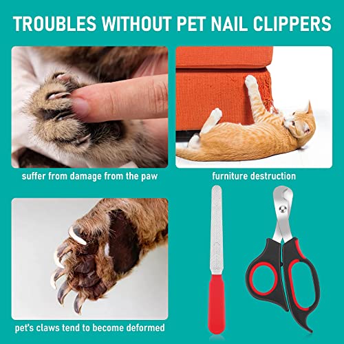Cobee Tagliaunghie per Gatti, Forbici per Tagliaunghie Professionali + Lima per Unghie Gattini, Tagliaunghie per Gatti in Acciaio Inossidabile Set di Forbici per Piccoli Animali Cuccioli(Nero+Rosso)