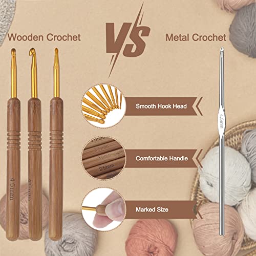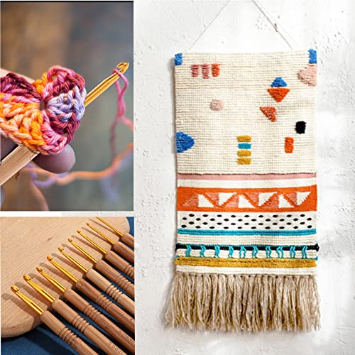 Cobee Set di Uncinetti, 9 Pezzi 2.0-6.0mm Aghi per Uncinetto con Manici in bambù Set di Ferri da Maglia Uncinetti Ergonomici per Principianti Appassionati di Lavoratori a Maglia