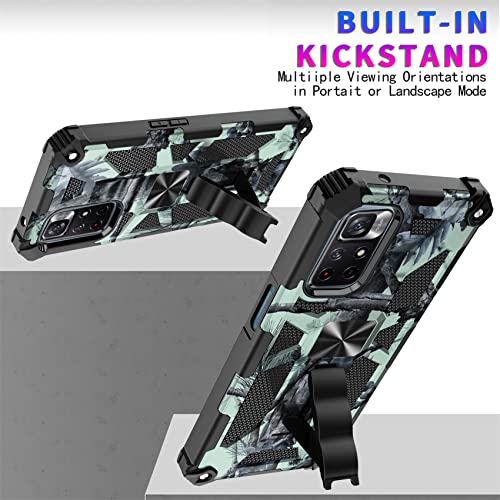 Coberllus Custodia Per Xiaomi Poco M4 Pro 5G Cover,Silicone TPU Antiurto PC Super Durevole Doppia protettore Cover,Kickstand Camuffare Case (Per Poco M4 Pro 5G, Verde)