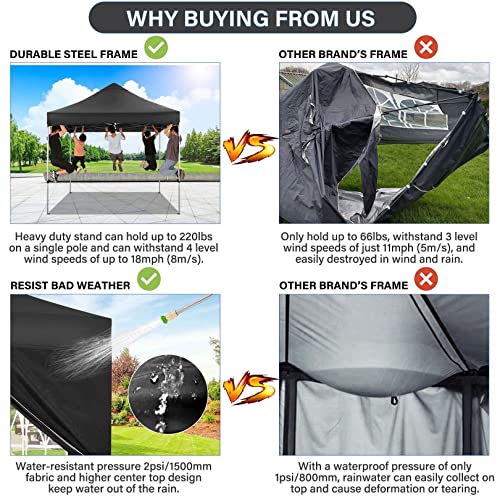COBIZI Gazebo 3x3,Gazebo Esterno Resistente con Parete Laterale e Sacchi di Sabbia,Esterno Pieghevole Impermeabile Gazebo da Giardino,Tendone Padiglione Pop Up per Feste Campeggio (3 per 3m Nero)
