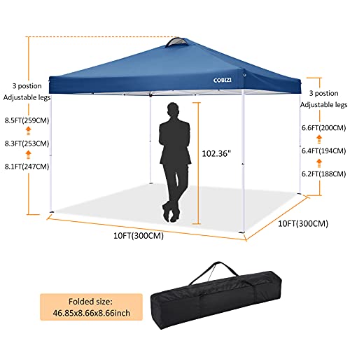 Cobizi Gazebo 3x3 Pieghevole Gazebo da Giardino con 4 Pareti Laterali e 4 Sacchi di Sabbia | Protezione UV 50+ | Telaio Telescopico in Acciaio | Regolabili in Altezza | Tenda Padiglione (Blu)