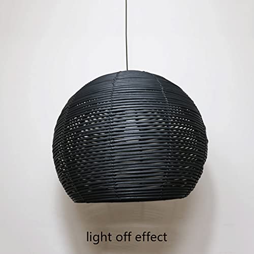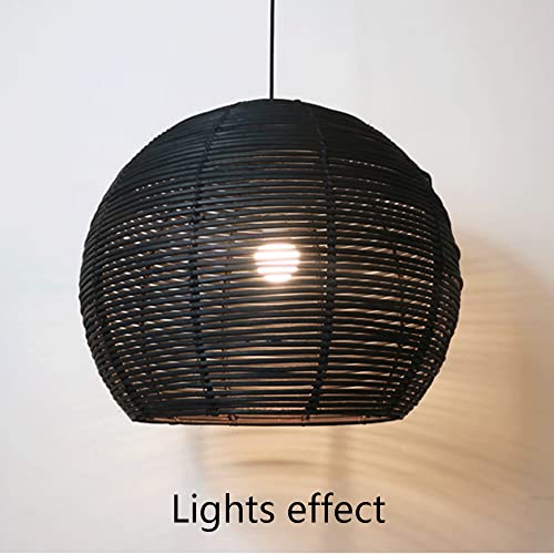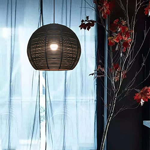 COBOTA Lampada Sospensione Minimalista Rattan Nero Lampadario Vimini Rattan Intrecciato Mano Lanterna Rotonda Vintage Rattan Lampada Cestello Materiale Naturale Apparecchio Illuminazione Decorazione