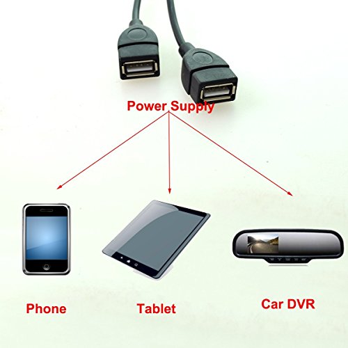Cavo di alimentazione Lunghezza: 15cm USB Lunghezza del cavo Porta: 35cm. Doppio porte USB femmina. Universale per tutti i dispositivi elettronici.