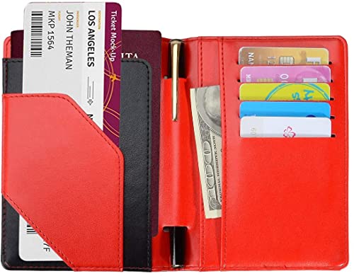 COCASES Porta Passaporto da Viaggio Portafoglio in PU Ecopelle Porta con Protezione RFID per carta di credito ID Documenti Custodia con 2 Bagagli Tag(Rosso)