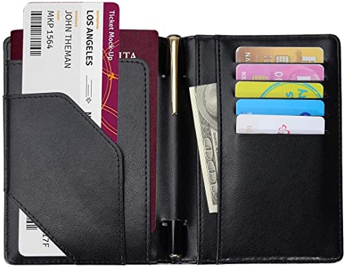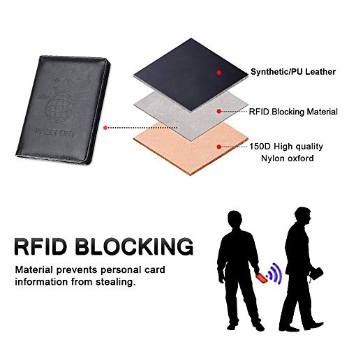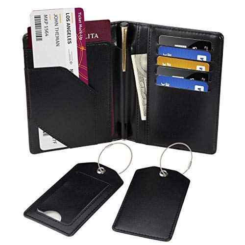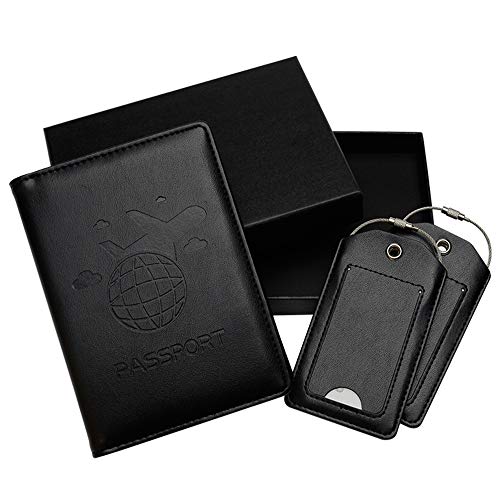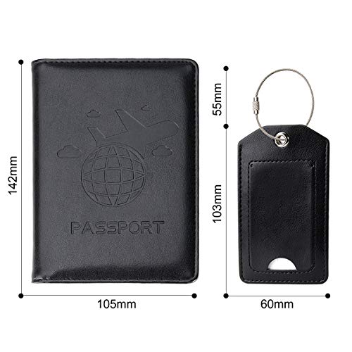 COCASES Porta Passaporto da Viaggio Portafoglio in PU Ecopelle Porta con Protezione RFID per carta di credito ID Documenti Custodia con 2 Bagagli Tag(Nero