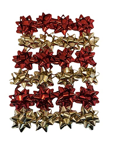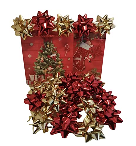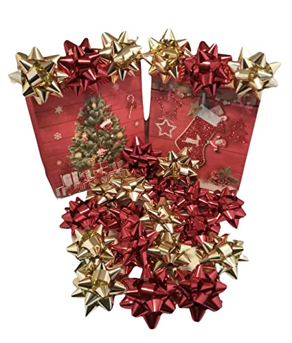 24 Coccarde da Regalo grandi, colore rosso, oro metallico per regali di Natale, Fiocchetti per Pacchetti Regalo Autoadesivi, Stelle Decorative per Natale e Compleanni Diametro 6 cm ADESIVO 2 CM