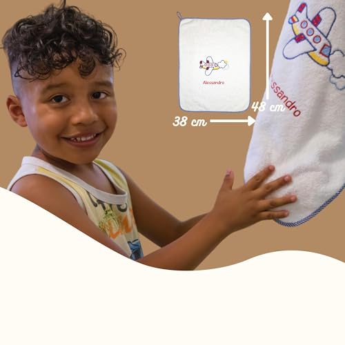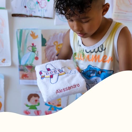 Coccole - Set 2 Asciugamani Asilo Bimbo Personalizzati - Doppio, in cotone Anallergico - Kit 2pz - Tema Aereo Blu - Made in Italy