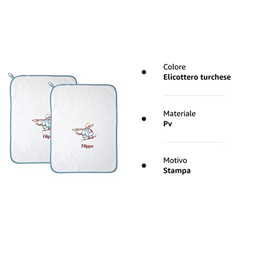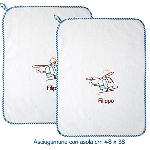 Coccole - Set 2 Asciugamani Asilo Bimbo Personalizzati - Set Doppio Asciugamano Asilo Personalizzato Cotone Anallergico - Kit Asilo 2pz - Elicottero Rosso - Set Asilo Personalizzato Made in Italy