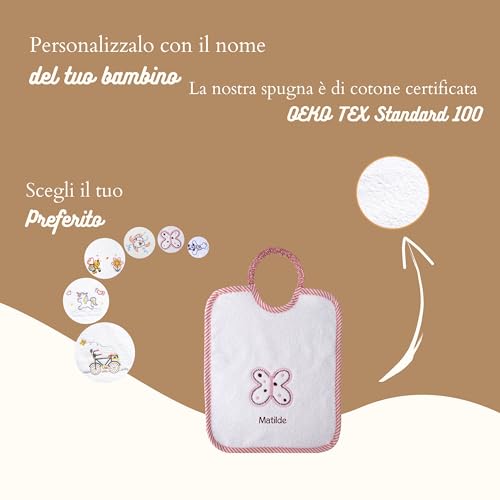 Coccole - Set Asilo Materna 2 Bavaglini Personalizzati - Set Doppio Bavaglino cotone Anallergico - Kit Asilo Materna 2pz Bimba con Tema Farfalla Rosa - Set Asilo Personalizzato Made in Italy
