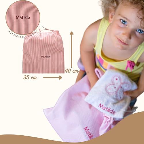 Coccole - Set Asilo Materna Personalizzato - Bavaglino, Sacca e Asciugamano - 3pz per bimba con Tema Farfalla Rosa - in Cotone 100% Made in Italy