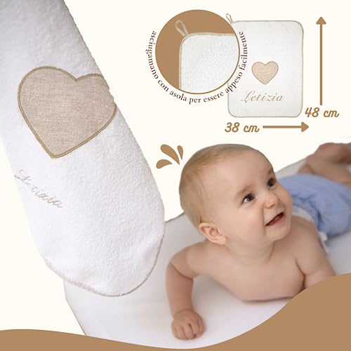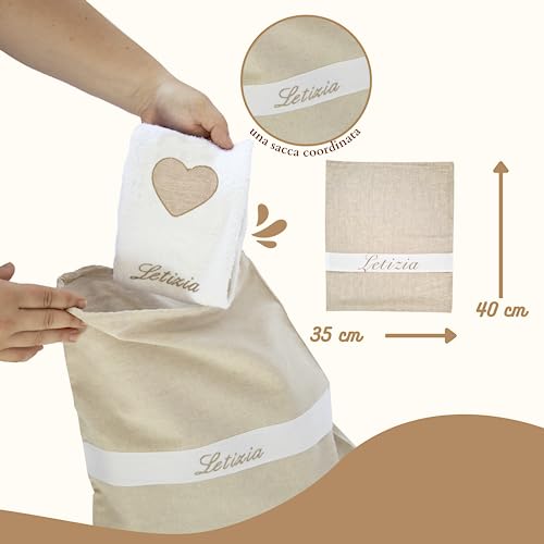 Coccole - Set Asilo Nido Personalizzato - Set Bavaglino, Sacca Asilo e Asciugamano - Kit Asilo Materna 3pz per Bimbo/Bimba con Tema Orso Écru - Set Asilo Personalizzato in Cotone Made in Italy