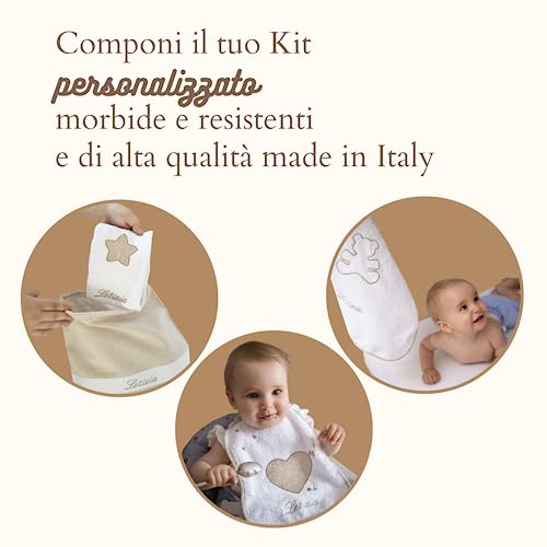 Coccole - Set Asilo Personalizzato 2 Sacche - Sacca Asilo Personalizzata 2pz per Bimba/Bimbo Tinta Unita Écru - Sacchetto Asilo cotone - Set Asilo Personalizzato con Nome 100% Made in Italy