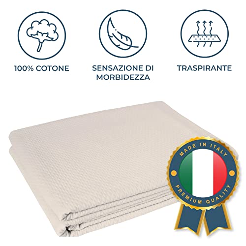 COPRILETTO SINGOLO: Copriletto in 100% piquet di puro cotone irresistibilmente morbido e delicato al tatto grazie alla sua lavorazione leggermente trapuntata. Garantisce un comfort senza pari durante il sonno. Il mix perfetto tra stile e comfort per un riposo eccezionale.