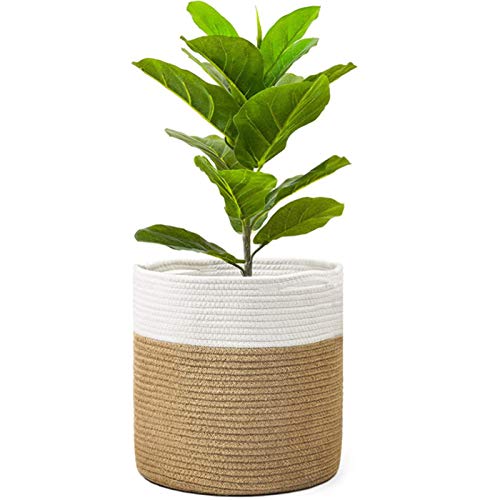NiC IS COCNG Cesto per piante in corda di cotone intrecciato da 20 cm, moderno cesto portaoggetti per la casa per fioriere da pavimento per interni
