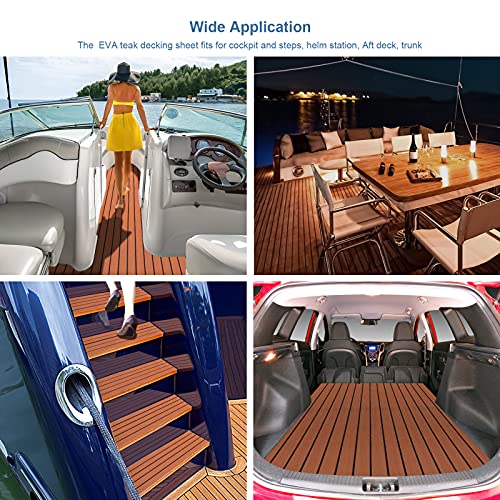 Tappeto Premium: Il rivestimento in teak sintetico può essere applicato su quasi tutte le superfici, come fibra di vetro, acciaio e legno Il tappeto marino EVA ha una buona resistenza ai raggi ultravioletti, allo sbiadimento e all'acqua salata ed è ignifugo.