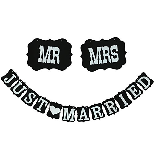Cocodeko Just Married e Mr & Mrs Striscione Banner bandierine Carta Decorazioni per Matrimonio o Foto Puntelli per Fotografia di Matrimonio, Photo Booth, con Nastro - Nero