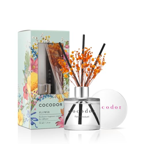 COCODOR Mini Diffusore a Bastoncini con Vero Fiore Conservato/Bouquet Floreale (Floral Bouquet) / 50ml / Diffusore per Ambiente, Profumatore Casa, Fragranza Ambiente, Regalo Donna