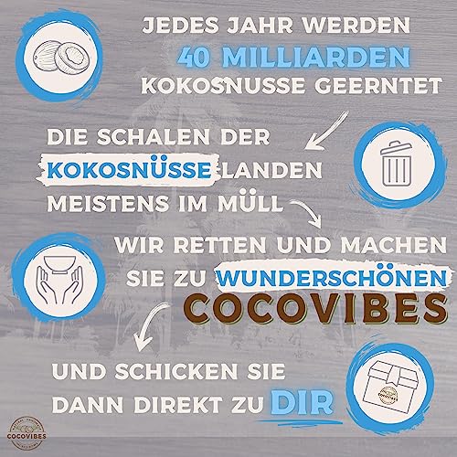 Cocovibes Ciotola in noce di cocco Ocean, con sottovaso/snack, ciotola decorativa per chiavi, gioielli, ciotola da servizio/moderno Splash, blu nero