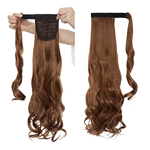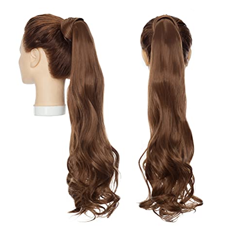 Coda di Cavallo Extension Clip Capelli Ricci Riccio Ponytail Hair Extensions Wrap Posticci Sintetici Lunghi Onda Ondulata 50cm Marrone chiaro