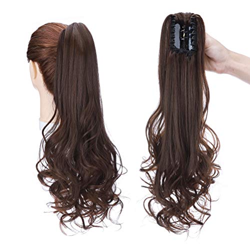 Coda di Cavallo Extension Clip Claw in Ponytail Finta Hair Sintetici Estensioni per Capelli Dritto a Riccio Lunghe Posticci 45cm 155g Marrone medio