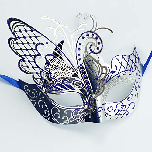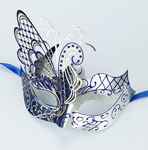 Coddsmz Misteriosa farfalla veneziana lucida farfalla signora mascherata Halloween Mardi Gras maschera festa (argento+blu)