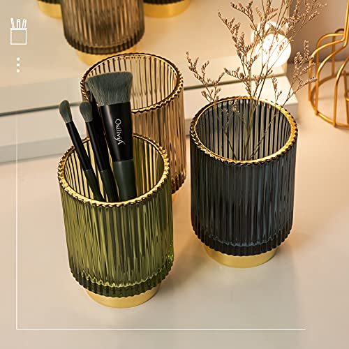 Elegante porta pennelli make up: l'porta trucchi organizer 7 code è realizzato in vetro spesso, che è resistente, chic ed elegante. L'porta pennelli con design vintage e finiture dorate farà risplendere la vostra scrivania, il bancone o il vostro tavolo.