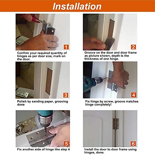 【Materiale in Acciaio Inossidabile Addensato】- I cardini di porte e finestre sono realizzati in acciaio inossidabile 304, che non è facile da arrugginire.La superficie è spazzolata, liscia e priva di sbavature e il materiale addensato aumenta la capacità portante. La cerniera è impermeabile e resistente all'umidità, resistente alla corrosione, non si deforma facilmente e ha una lunga durata, ideale per sostituire le vecchie cerniere delle porte.