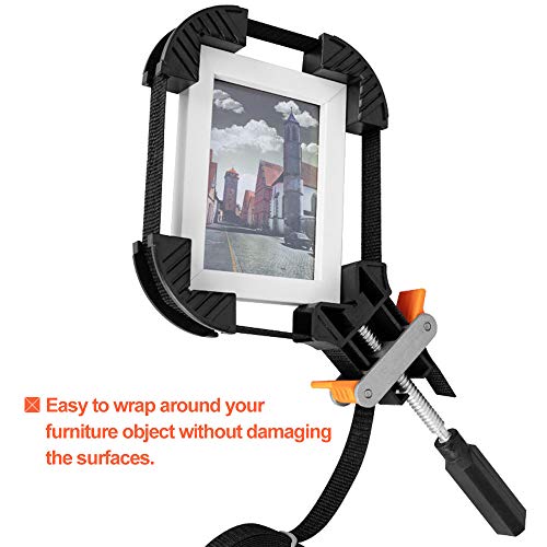 Facile da Usare: Posizionare l'oggetto negli angoli del tenditore a nastro, stringere il cinturino ruotando la maniglia finché l'oggetto non si blocca saldamente tra gli angoli(in senso antiorario per stringere il morsetto e in senso orario per rilasciarlo)