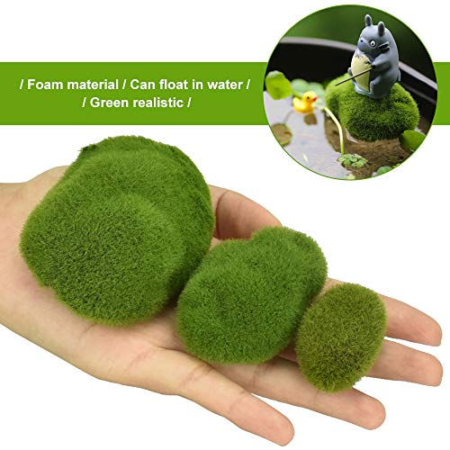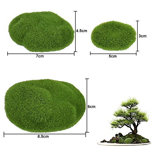 3 Dimensioni Diverse: Grandi: 8,5 * 6 cm, medie: 7 * 4,5 cm, piccole: 5 * 3 cm. Puoi posizionare queste rocce verdi finte in vasi, cilindri di vetro o vassoi decorativi per creare una sensazione naturale.