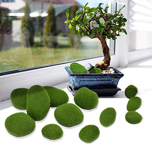 CODIRATO 12 Pezzi Muschio Artificiale Muschio Finto Rocce Pietre Decorative Pietre Finte Verdi per Decorazione Giardino Vaso Casa Micro Paesaggio(3/6/8CM)